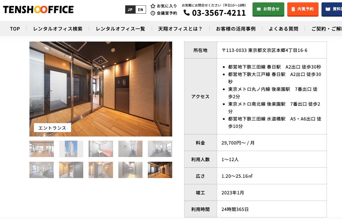 レンタルオフィスのHP