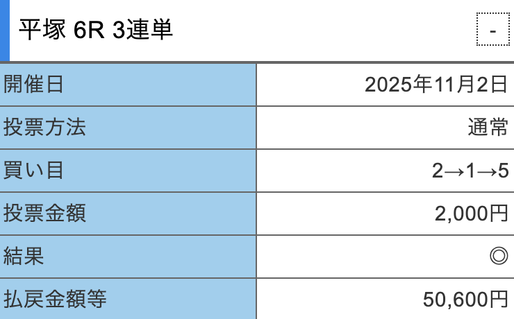 3戦2勝1敗と勝ち越しました!やはり無料プランなので配当に多少の物足りなさは感じますが、ほぼ勝ちです!無料プランにしては十分すぎる結果ではないでしょうか。有料プランへの期待が込み上がりますよね!