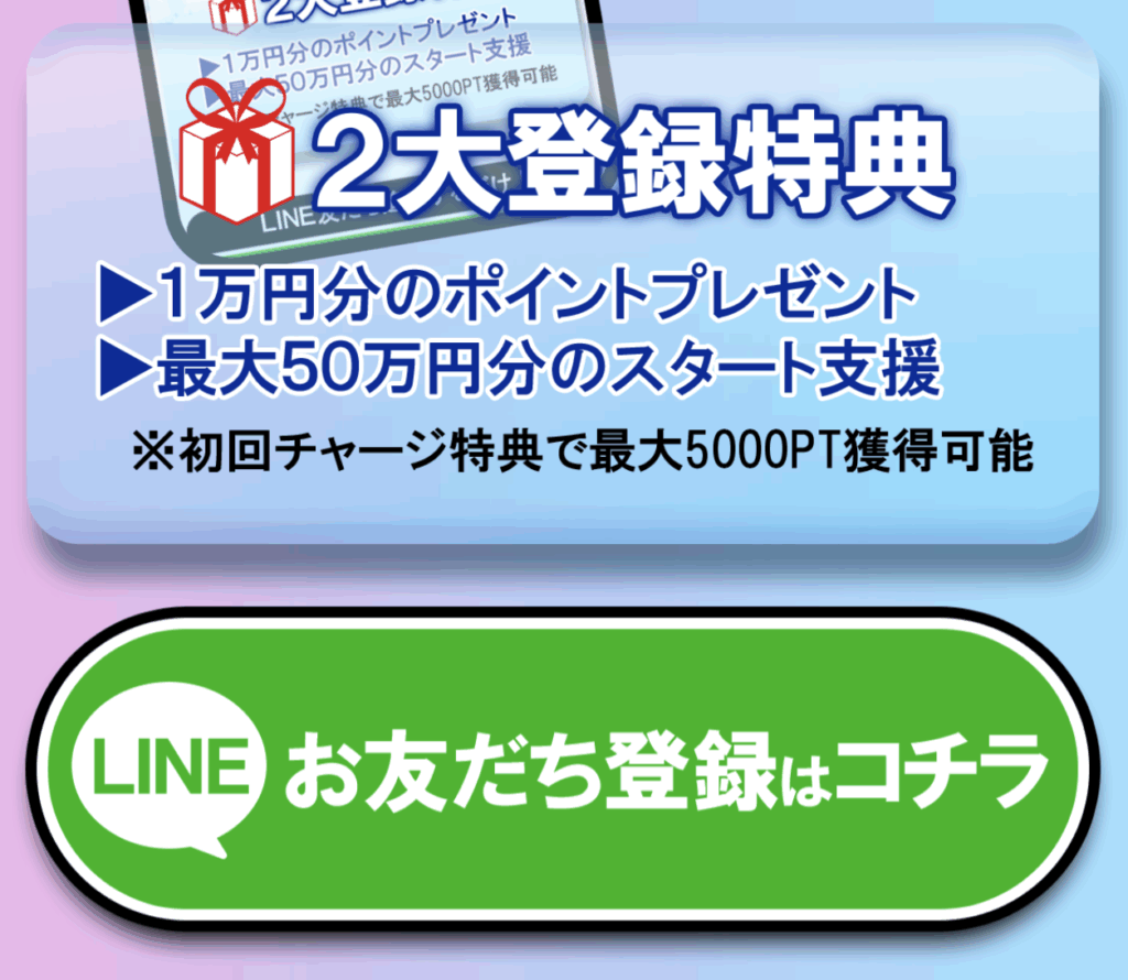 クリアレーサーの公式LINEから簡単に登録ができるので特典を貰っちゃいましょう!有料プランで使えるポイントが無料でGETできちゃうのはお得ですね!