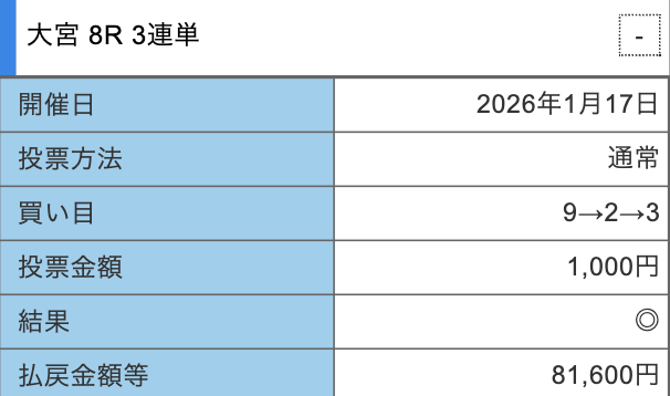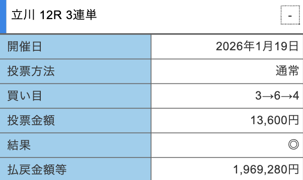 またしてもトータル的中率80%という結果になりました!トリガミも無く、1部目標金額に達していないプランもありますが、これだけ大きい配当をもたらしてくれたので正直あまり気にならなかったです!(笑