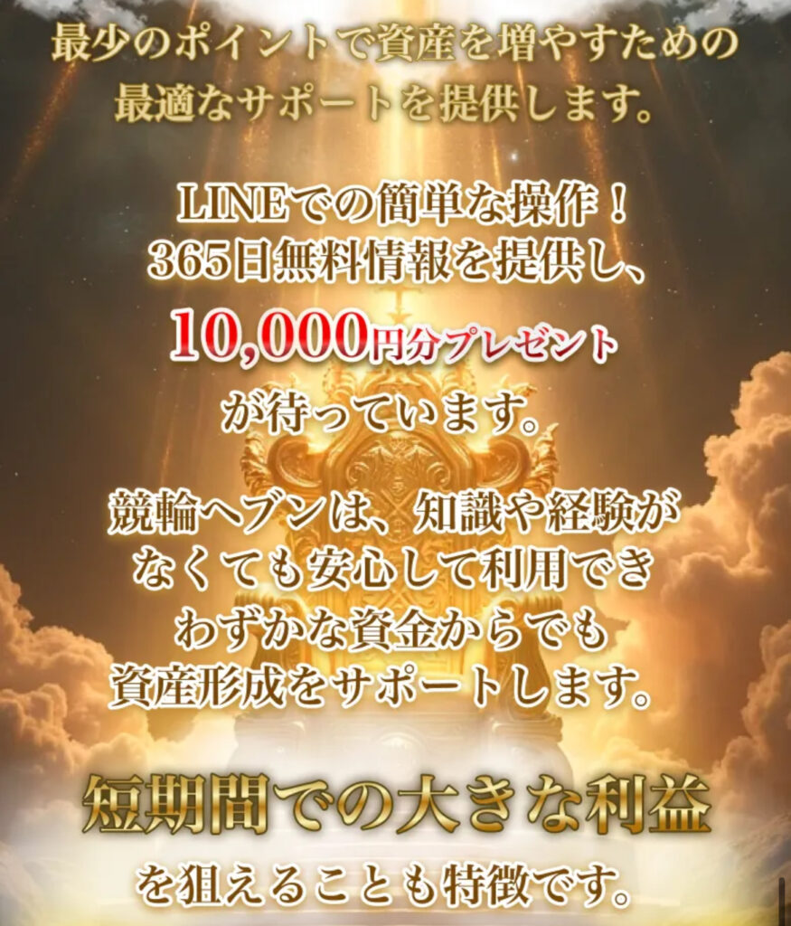 競輪ヘブンの公式LINEから簡単に登録ができるので特典を貰っちゃいましょう!有料プランで使えるポイントが無料でGETできちゃうのはお得ですね!