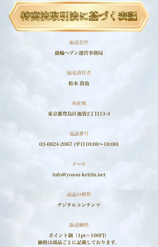 メールと電話での問い合わせもができるので信用度は高いわね!また、住所に関してですがビル名とさらに階数まで公表しているのが珍しく信用度UP!よ!
