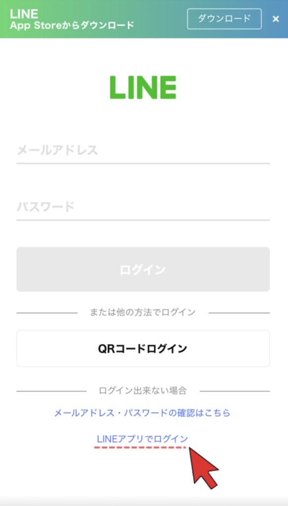 STEP2:↑の画像のように「LINEアプリでログイン」をタップ