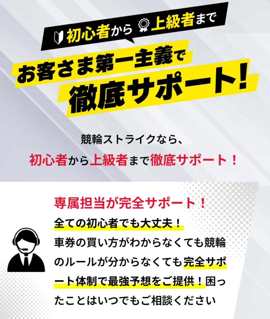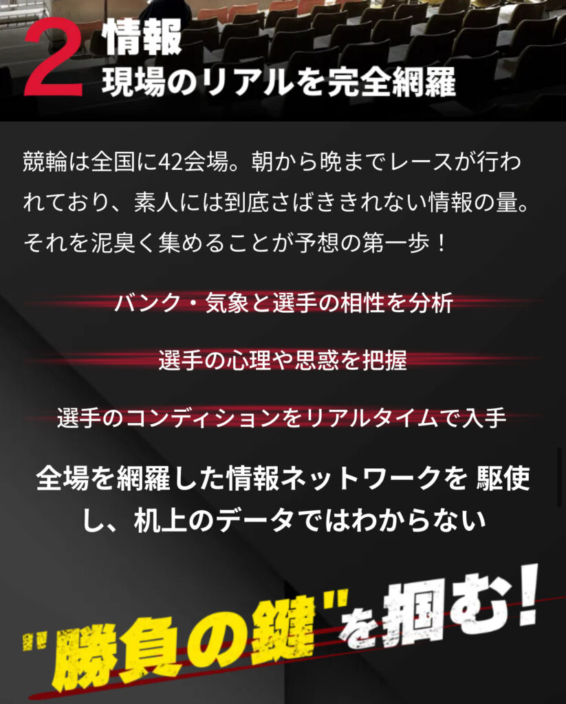 キャッチコピーとして、「勝つための最強の環境」をトップに掲げています!「車券の買い方」から「競輪のルール」まで完全サポートで相談していいっていう会員全員に優しい体制をとっているので安心して利用できますね!