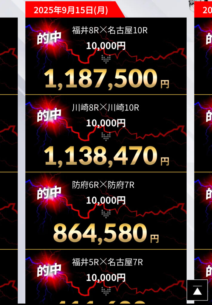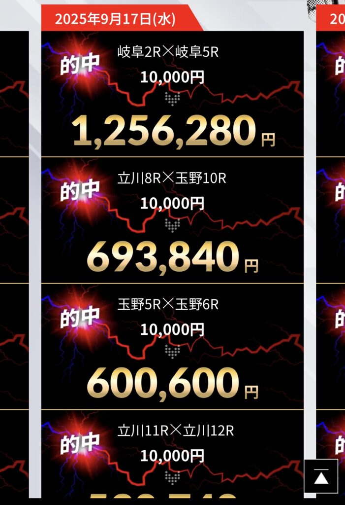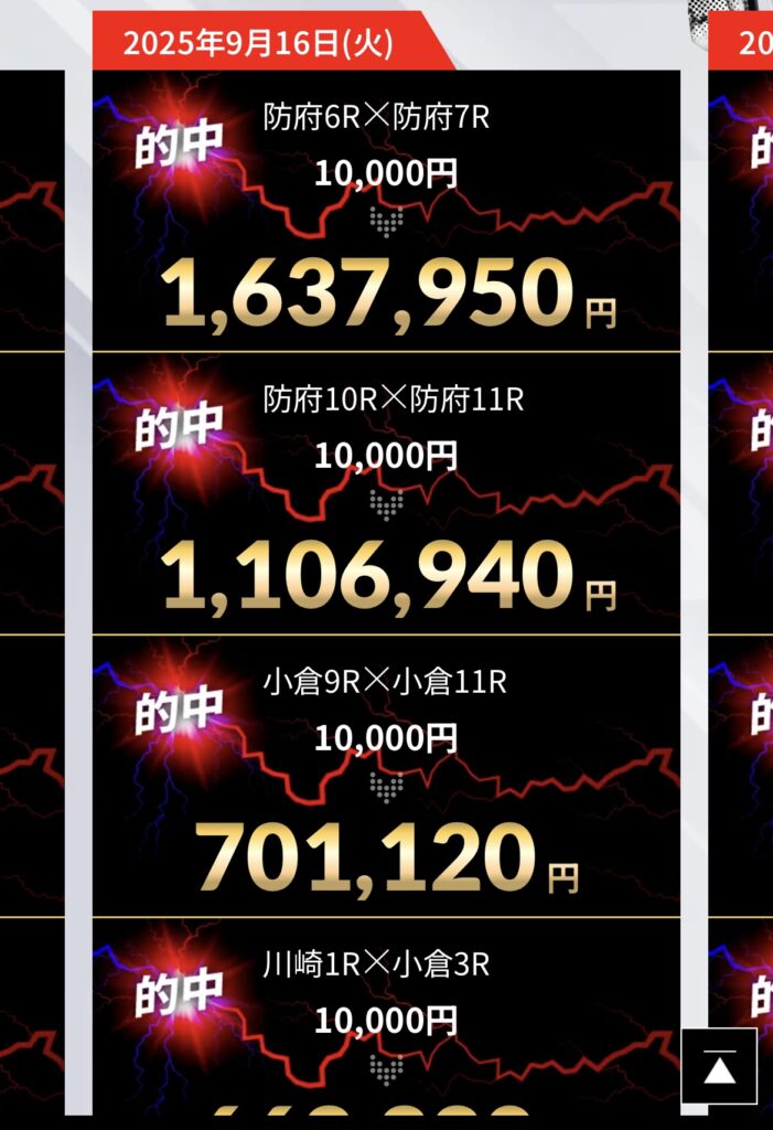 サイトに掲載されている2025/9/16付近の的中実績⇧