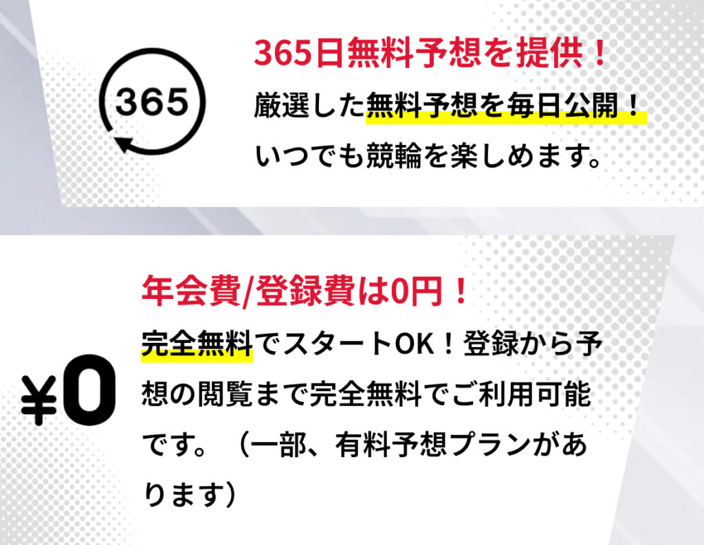 登録無料で、365日毎日無料予想が提供されています。これにより、有料プランを利用する前に予想の精度を確認することができます!